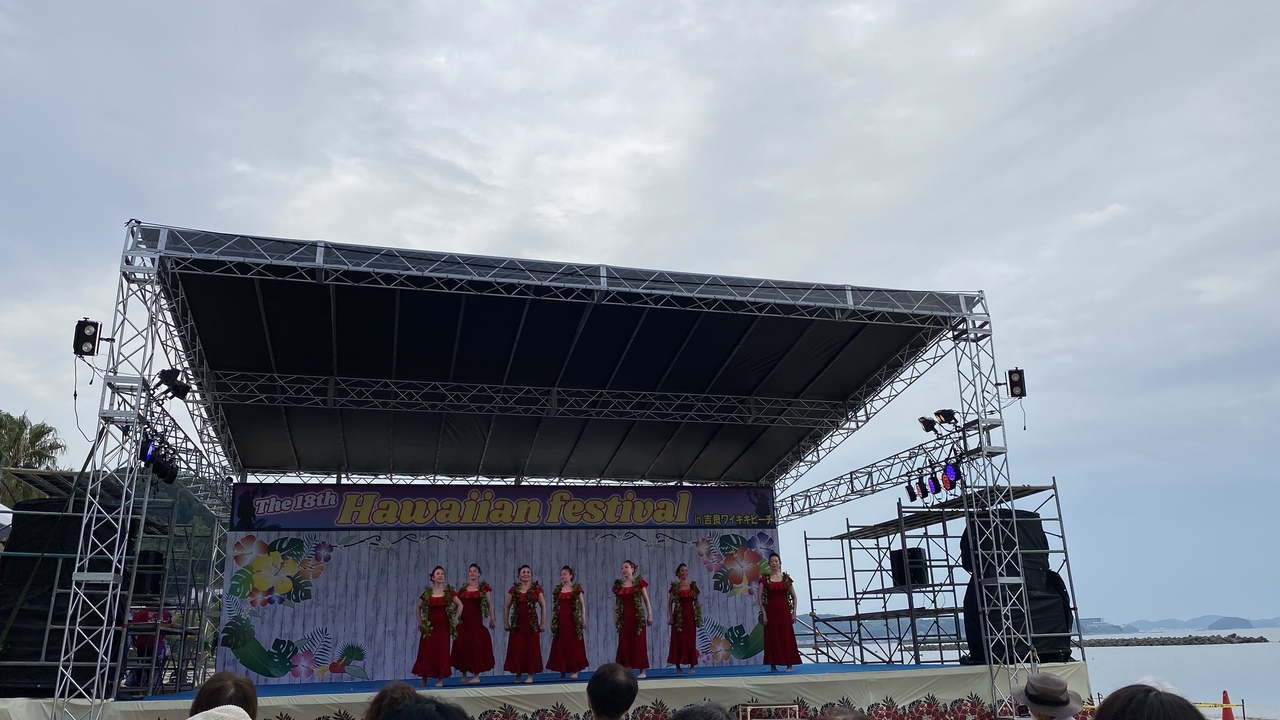 この辺りでは吉良温泉のある、吉良海岸の海水浴場は吉良ワイキキビーチと呼ばれてます。毎年夏には吉良ハワイアンフェスがありまして、フラダンスのショーがあります。名鉄吉良吉田駅からシャトルバスもこの時は出ています。