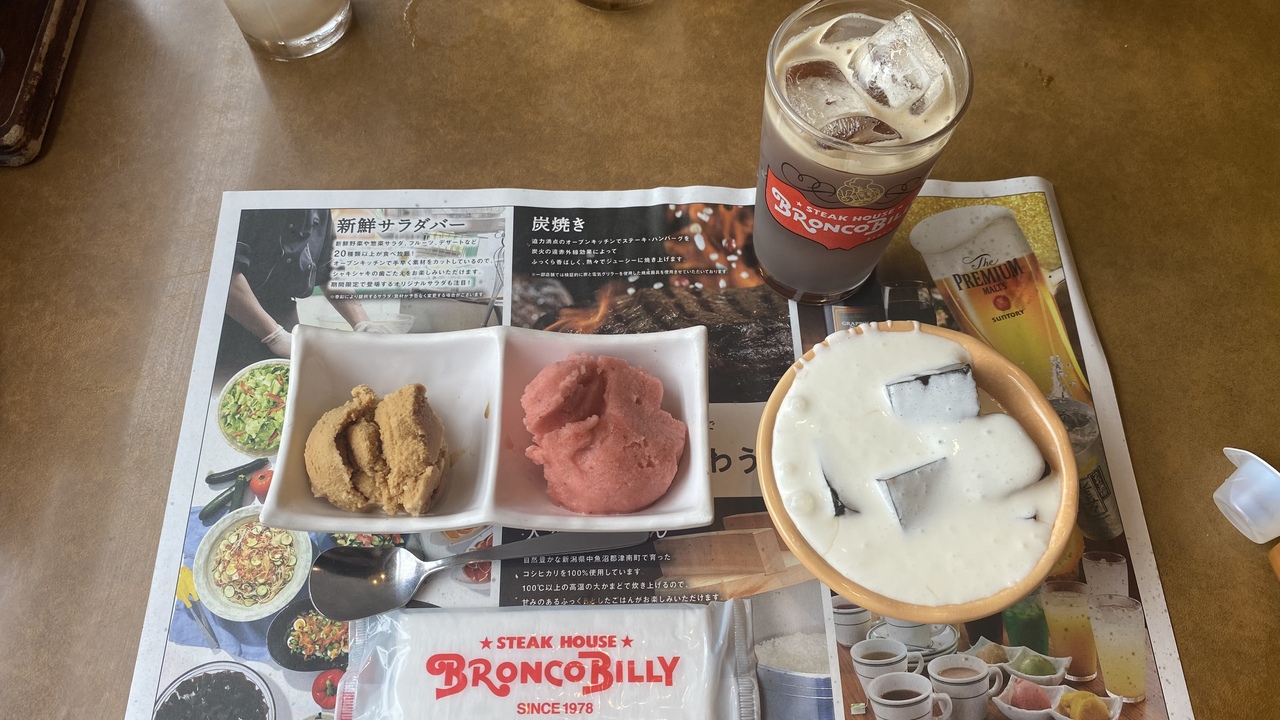 ブロンコビリーは月一くらいで仕事先のランチで行きます。必ず1人1枚スクラッチカードをくれまして最低でもドリンクとジェラートバー無料券がもらえてその上は金券です。サラダバーは季節ごとに変わります。北海道などの地産野菜ののサラダバーもあります。