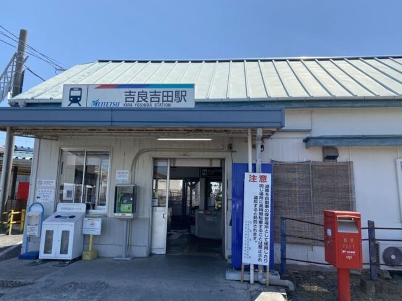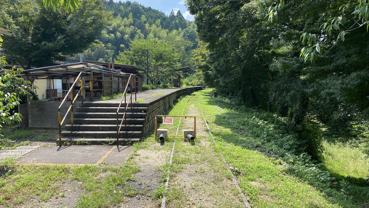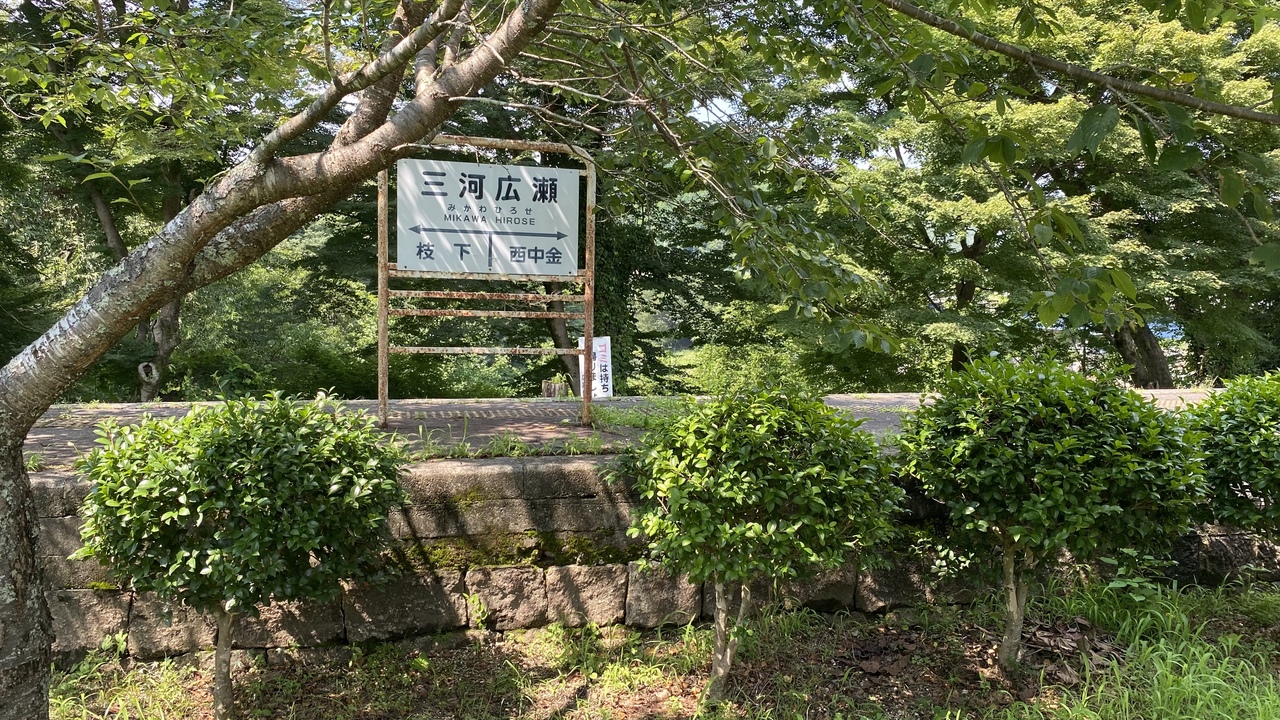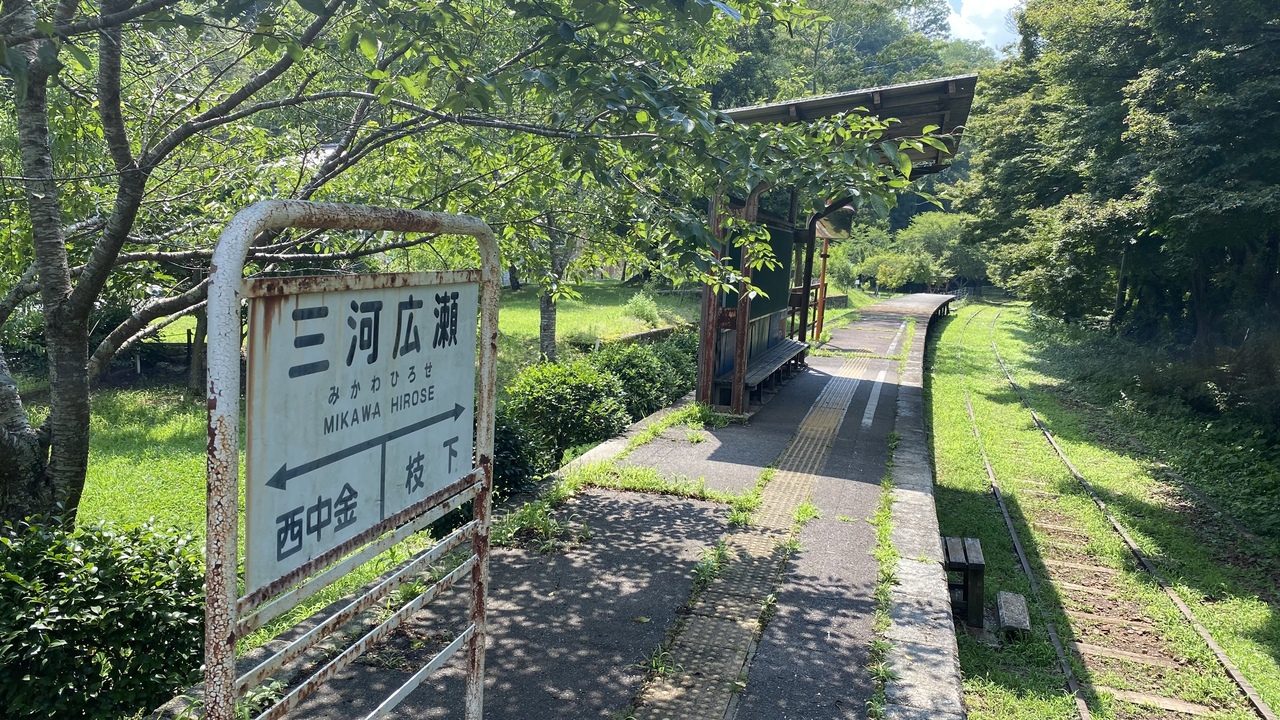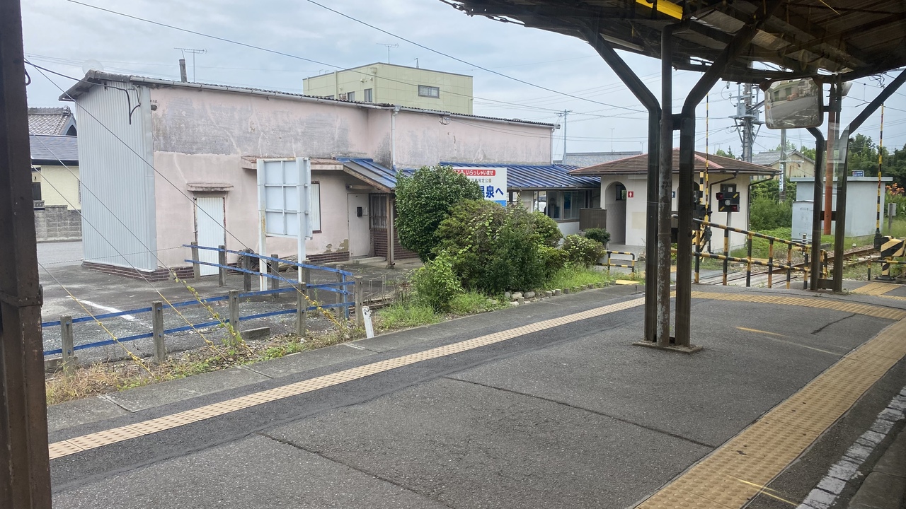 名鉄三河線通称山線の終着駅です。廃線から約15年近く経ちましたが、今でも駅舎もホームも残ってます。休日のみ営業しているカフェに駅舎はなってます。レールには盛り石がしてあり段差なくレールの上を歩けます。