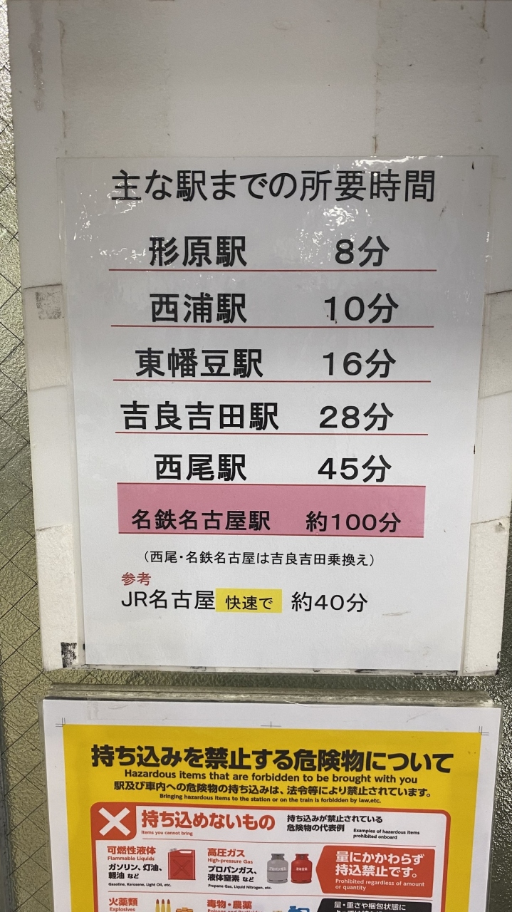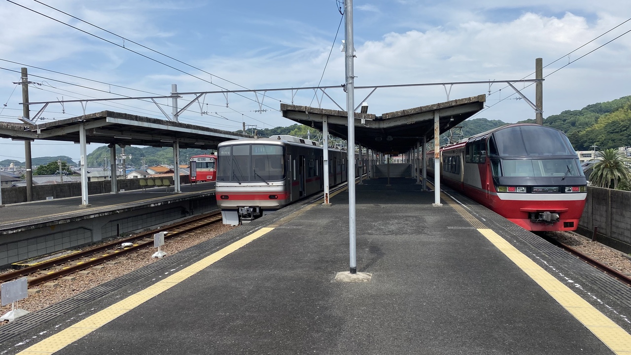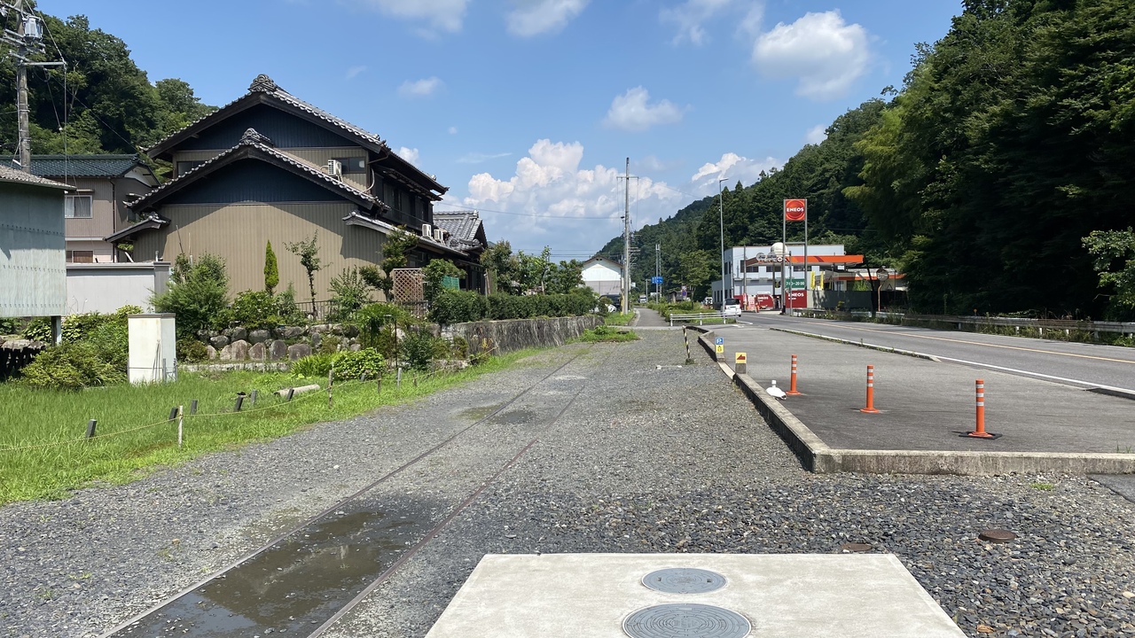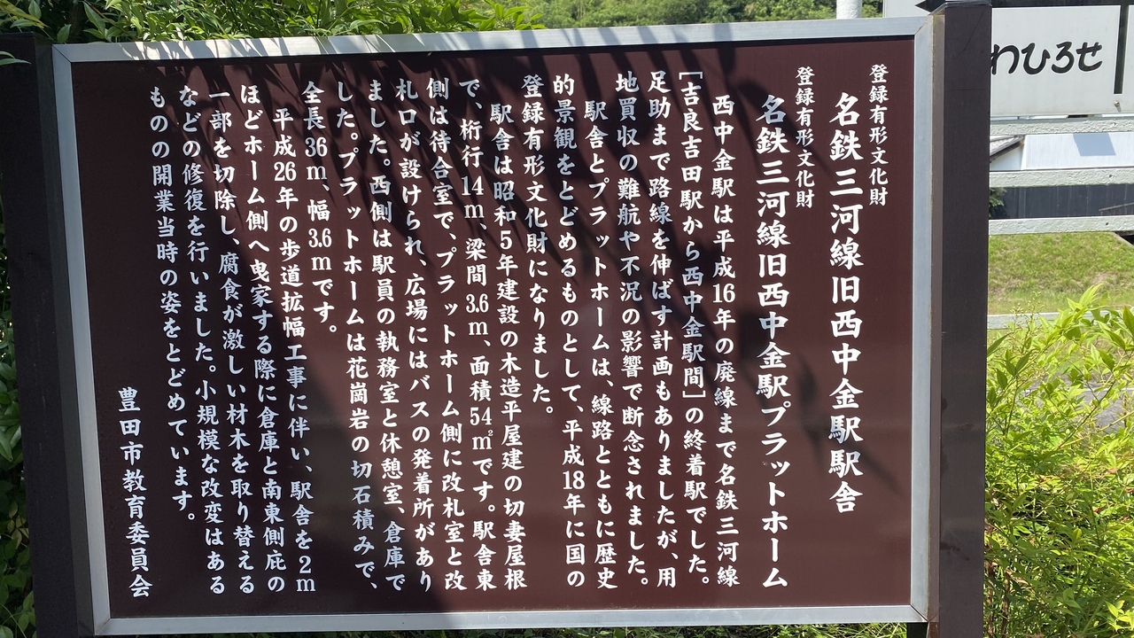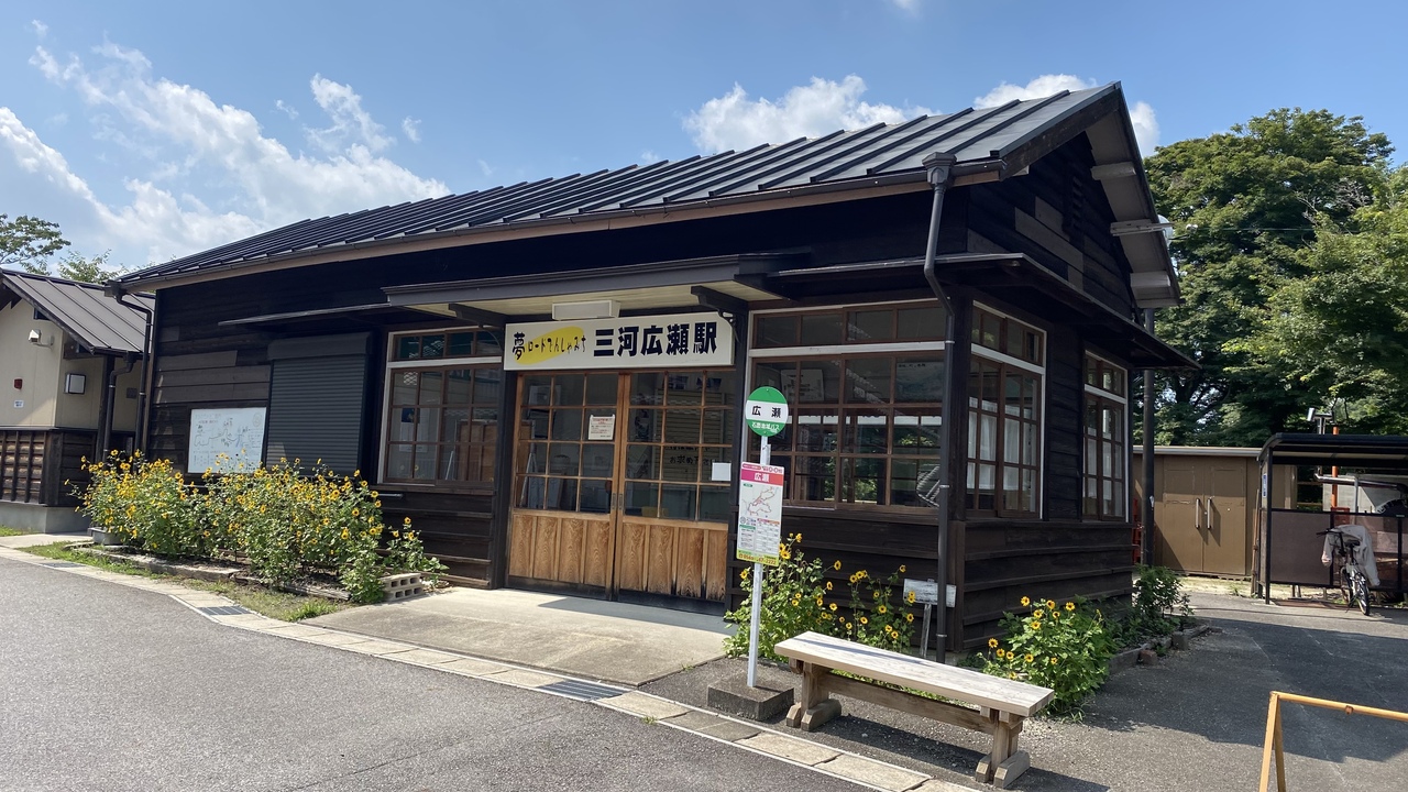名鉄三河線通称山線の終着駅です。廃線から約15年近く経ちましたが、今でも駅舎もホームも残ってます。休日のみ営業しているカフェに駅舎はなってます。レールには盛り石がしてあり段差なくレールの上を歩けます。