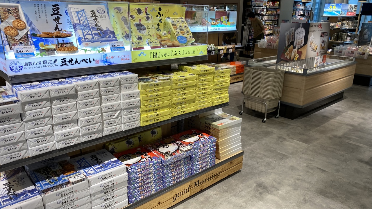九州に渡る手前にあるパーキングエリアです。最近リニューアルオープンしたみたいで、かなりきれいです。名物ふぐのお土産やこのエリアのお土産がたくさんあります。レストランは海鮮丼メインでメニューは豊富です。。
