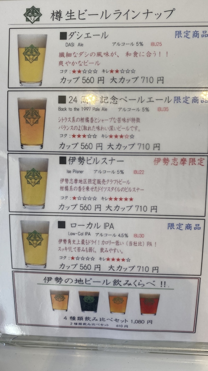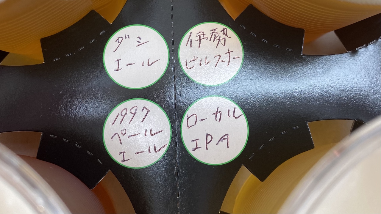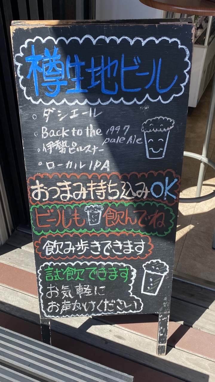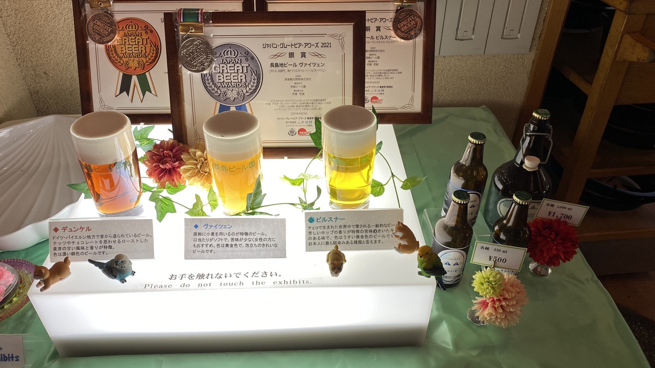 店内は狭いですが、立ち飲みできるテーブルあり。となりに練り物屋があるので持ち込みもOK。地ビールは豊富に種類あり缶ビールや瓶ビールはお土産も可能。4種類飲み比べセットは1080円とお得に全種類飲めます。