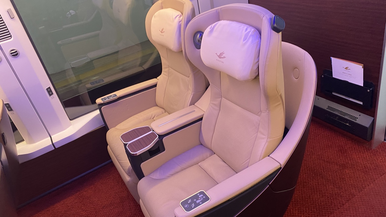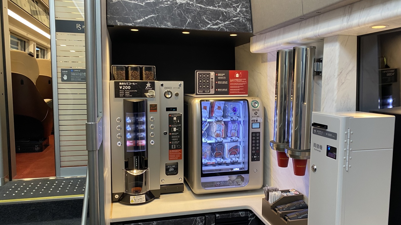 ようやく乗れました。せっかくなのでプレミアムシートにしました。レギュラーシートに900円プラスならこちらの方が絶対お得です。バックシェル付き電動リクライニング3列シート。無料ロッカー、有料コーヒーとスナック自販機もあります。