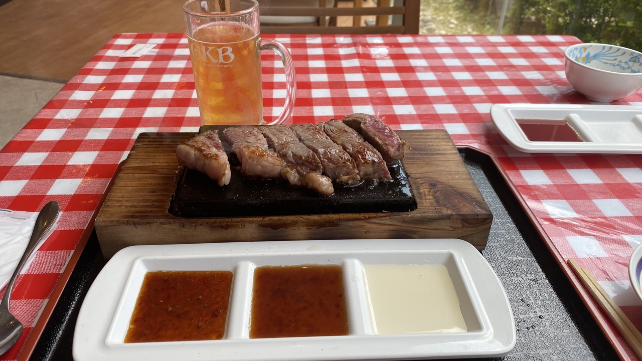 阿蘇名物のあか牛を食べようと思い、ネットで見つけました。ここは1948年からやっている老舗で、あか牛のローストビーフ、ステーキ、ハンバーグなど多彩なあか牛のメニューがあります。JR宮地駅の真裏なので鉄道旅でも便利。