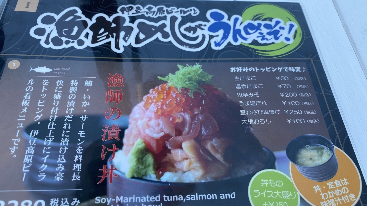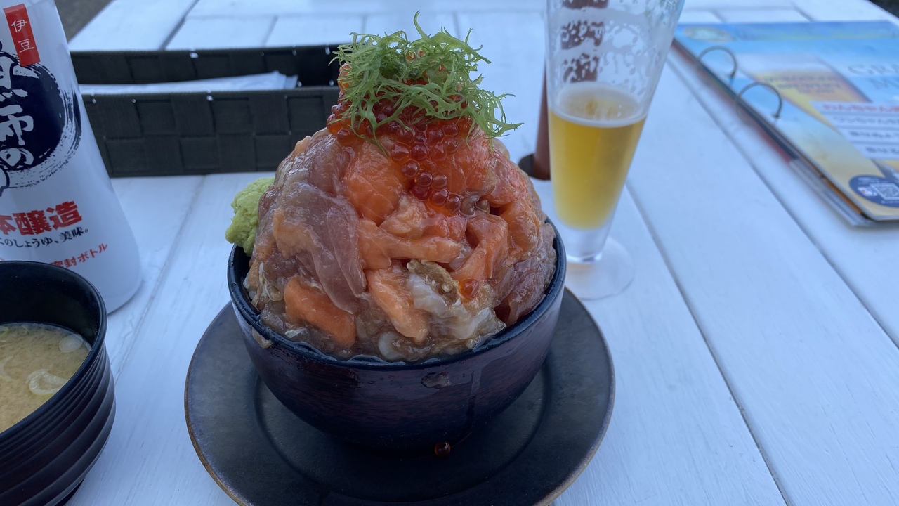 伊豆マリンタウン内にあるレストラン。海鮮丼とピザと地ビールとメニュー豊富です。外のテラスはペット同伴で食事も可能です。店のオススメ漁師丼はボリュームがパナいです。地ビールも種類豊富。他に2店舗いずにあります。