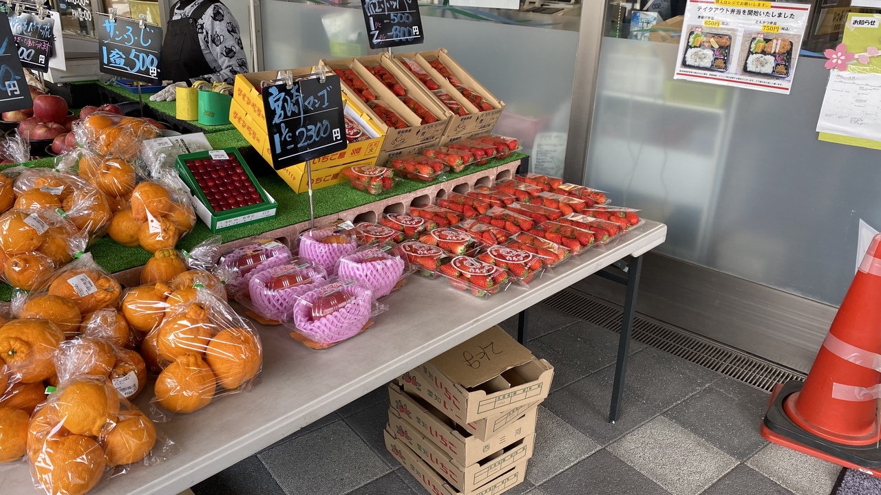 国道23号線バイパスから蒲郡方面のみ入れます。駐車場が少ないのが難点。休日はすぐ混みます。テントでご当地グルメを食べたり買ったりできますし、お店でも地元の野菜やフルーツ売ってます。バーベキューもできます。
