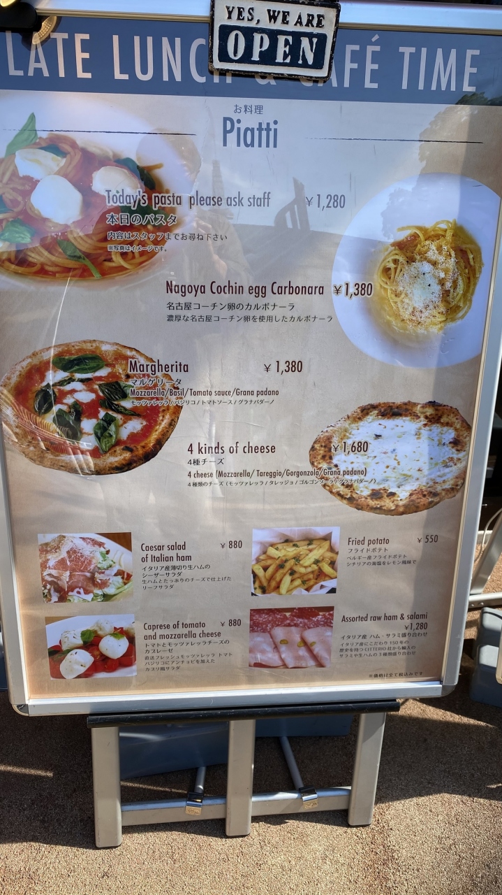 栄に来た時ランチを探してて、ネットで見つけました。ちょうど名古屋城の金のシャチホコ展の出口の真ん前です。名古屋名物名古屋コーチンのカルボナーラと八丁味噌モッツァレラピザを頂きました。ランチ時でサラダーバーも着いてお得でした。