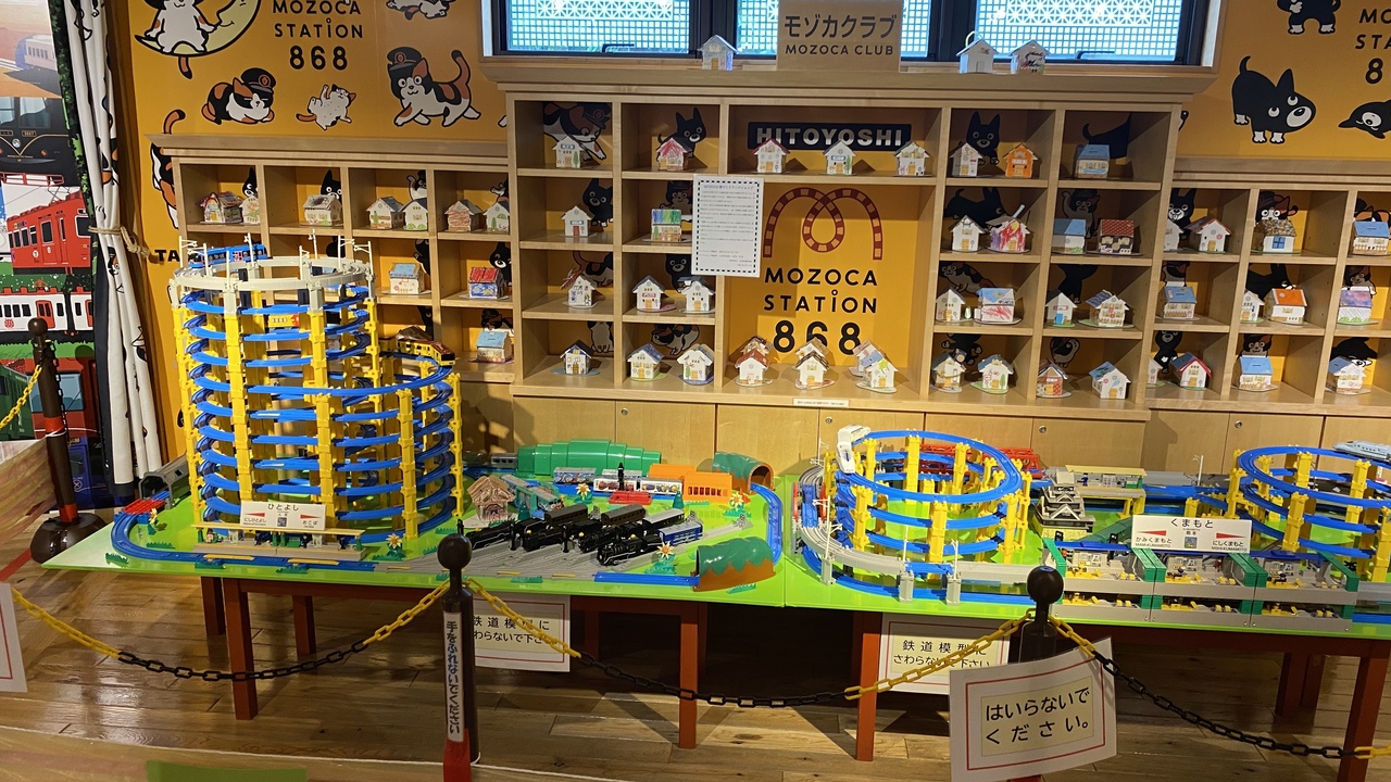 人吉駅前からすぐのところにあります。どちらかと言うと子供向きのミュージアムです。館内から外へミニSLが走り、ミュージアムのデザインはまさに水戸岡氏という感じです。プラレールやお土産などいろいろあります。
