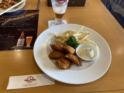 全国の地ビール巡りできました。そして門司港名物焼きカレーを頂きました。地ビールは5種類あります。飲み放題がないのが残念です。。。フィッシュ&チップスは名物フグのフライです。メニューのタコの唐揚げが美味しそうだったので頼んだら正解!タコが柔らかいです。