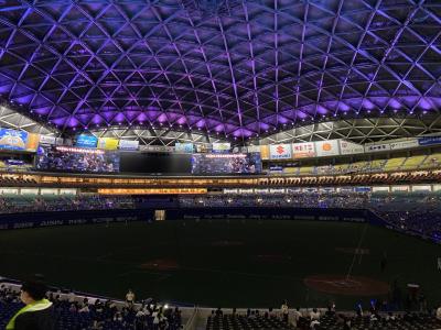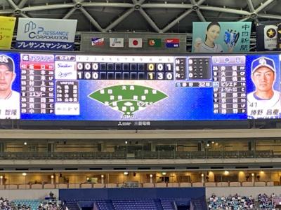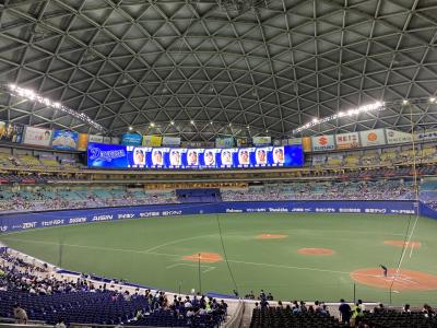 コロナ対策の中久々に観戦しました。オーロラビジョンも最近かなり大きくなり、選手データーがいつでも見れます。現在は荷物検査に加えて検温を入場前にします。ちなみに今まであった紙コップへの缶やペットボトルの飲料の詰め替えはやってないのでこれらの持ち込みはできません。