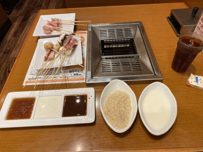 ランチなら2000 円以下で食べ放題できます。串は豚、牛、鳥、椎茸や野菜など品数豊富。つけダレもソース以外もポン酢や味噌など豊富。カレーやご飯もあり、ソフトクリームも食べ放題です。現在バイキング取りに行く時はマスクとビニール手ぶくろをしないといけません。