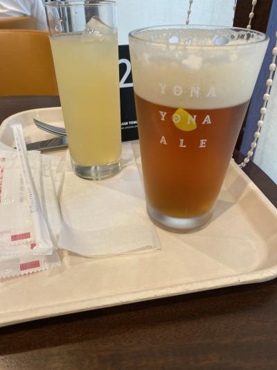 軽食にクラフトビールののぼりで寄りました。ピザとパスタとケーキのお店です。クラフトビールは2種類。大・中と選べます。よなよなエールをいただきました。ザ・地ビールという味の期待通りの味でした。ピザは大きいのですが、モッツァレアチーズが少ないのが不満でした。