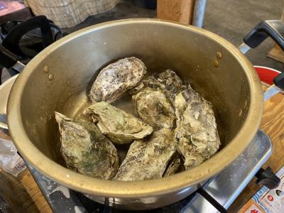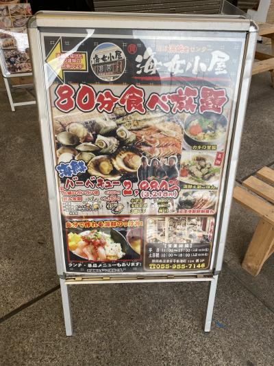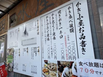 土日は10:00オープンですがその前から並んでる人気店です。2300円で自分で焼いて食べれます。洗面器にいっぱいの牡蠣がノルマです。焼くのに時間がかかるのでそんなにはたべれなかったですが堪能しました。水分が無くなったらたべれます。詳しくは旅行記で