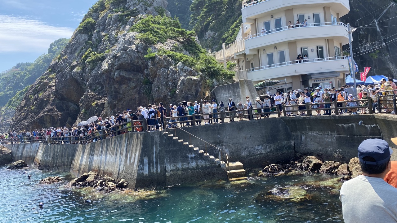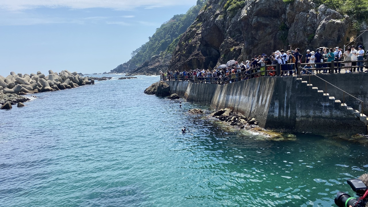 この海岸に行く道はかなり細いので要注意です。ドラマのロケをした海岸では実際に海女さんが、シーズンになるとウニの素潜りを見ることができます。あまちゃん再放送効果でたくさんの観光客がいました。ストーブさんのバイトの監視小屋も山を登るとあります。