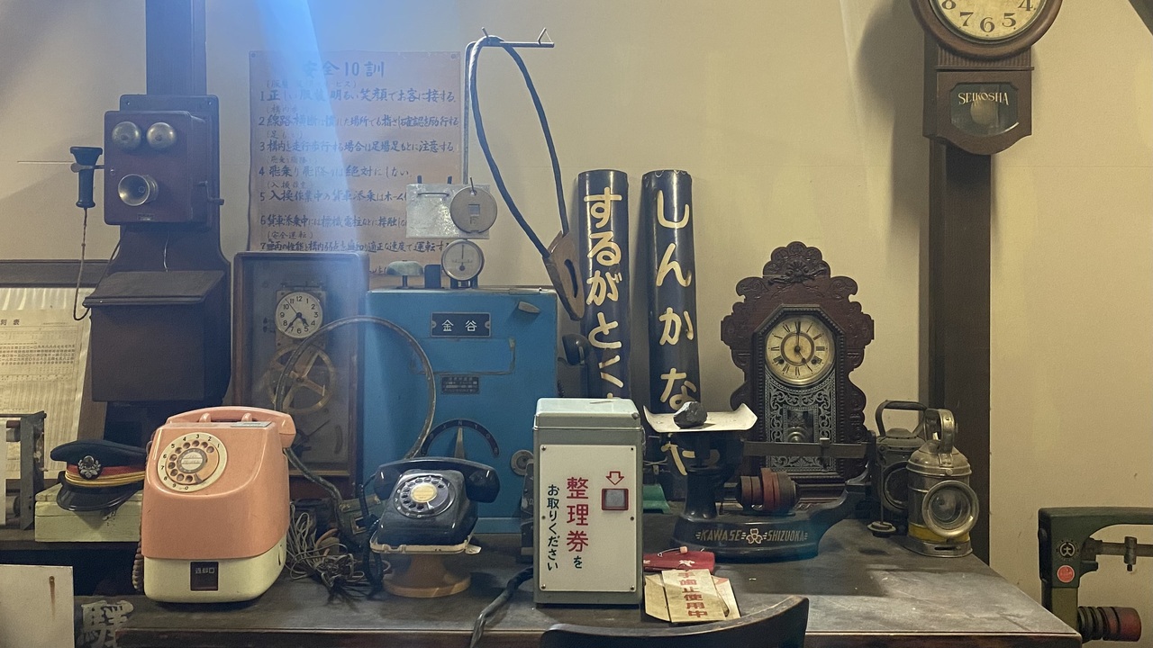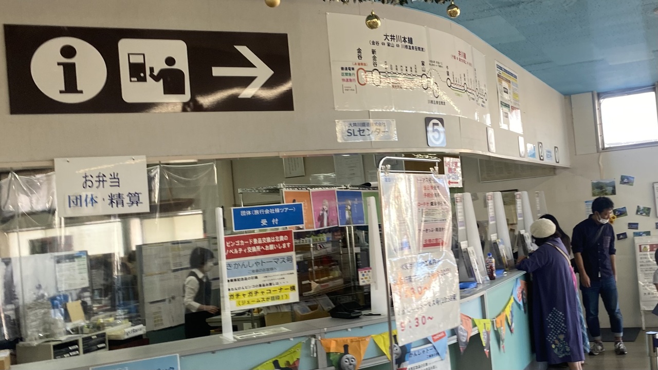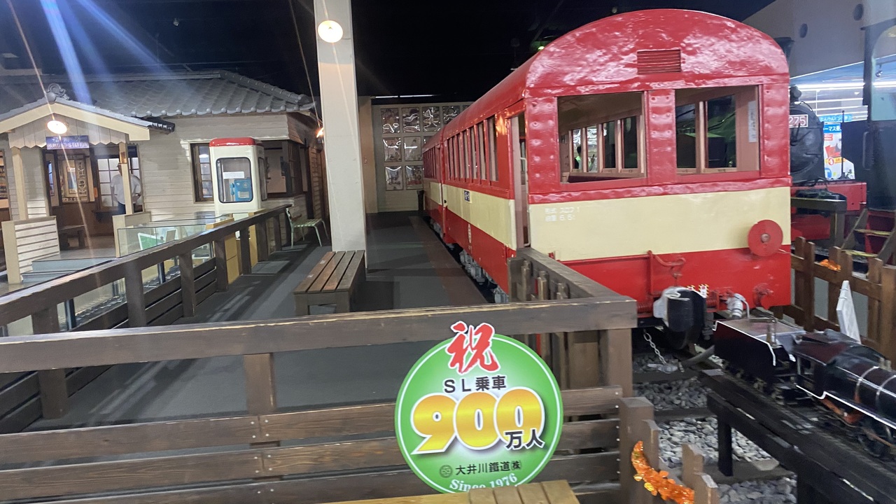 大井川鐵道のSLの指定券などは駅でなく、こちらで販売しています。たくさんの沿線土産や駅弁も売ってます。昭和時代の旧井川線を走っていたミニSLと客車をその時代の駅舎を再現したホームに保存しています。中にも入れます。