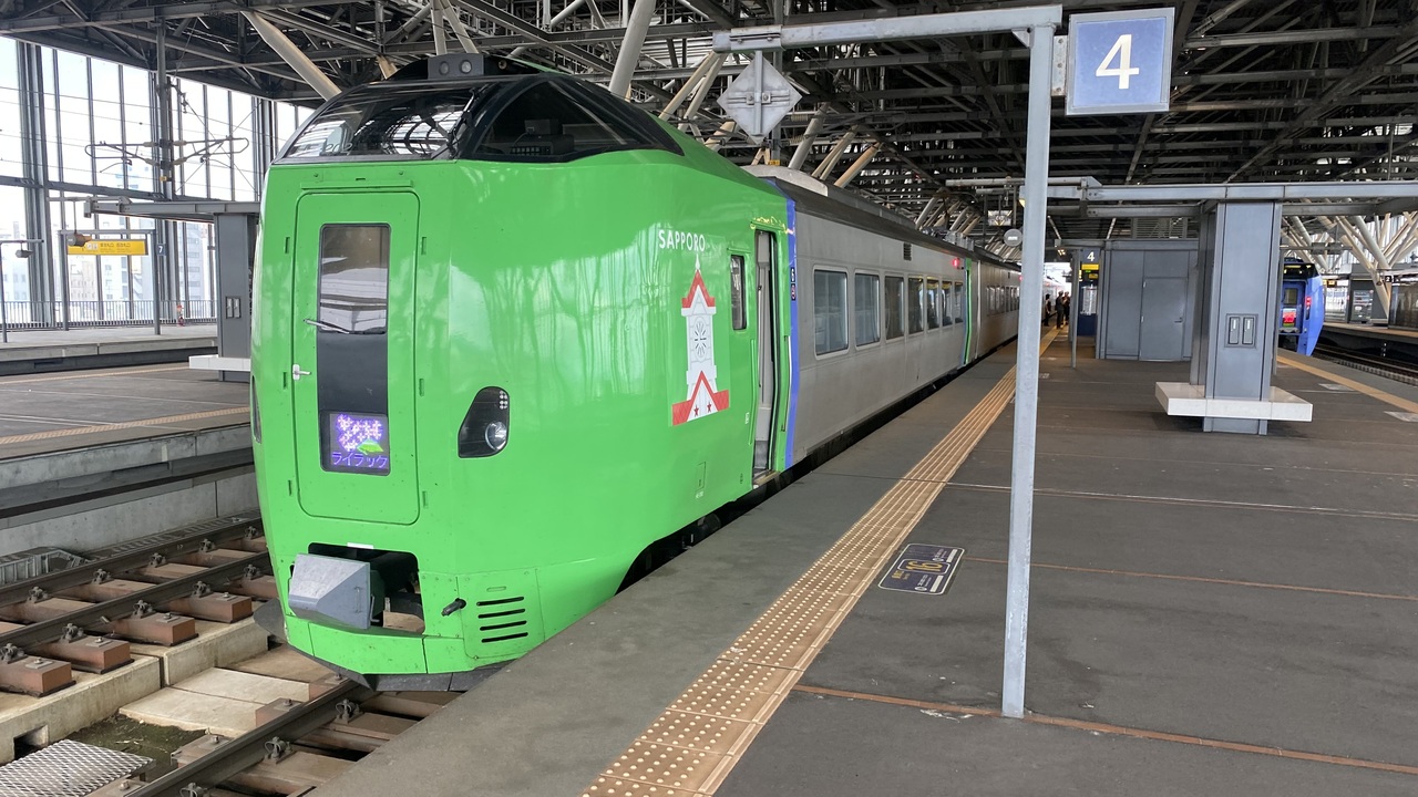 特急大雪乗り換えで旭川から札幌まで乗りました。過去に遡ると特急いしかりとして485系1500番台だったかな?からスタートした北海道初の電車特急です。その後車両は北海道専用の車両になり、今は特急カムイと並走してます。