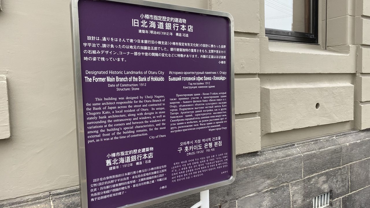 JR小樽駅から徒歩10分ほどのとこにあります。昭和2年に設立したそうです。小樽は日本のウォール街と言われたほど、銀行の建物がたくさん街中に密集しています。今は現役ではありませんが、街中での存在感は圧倒的です。
