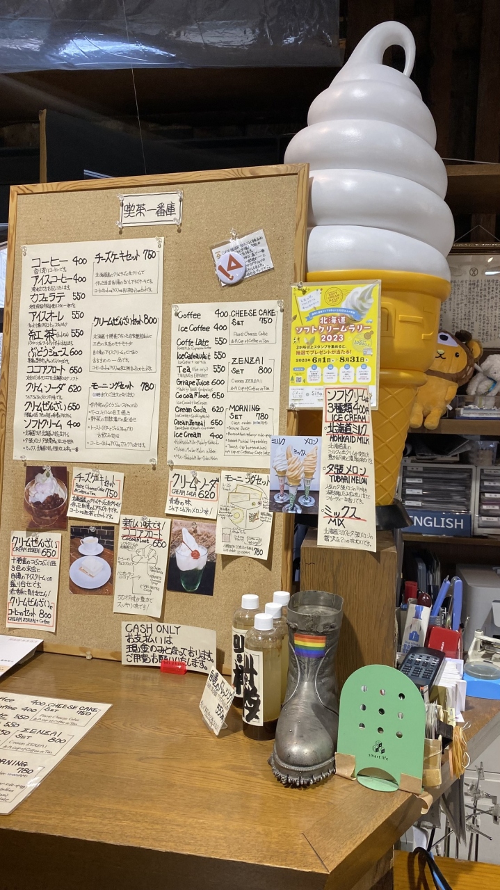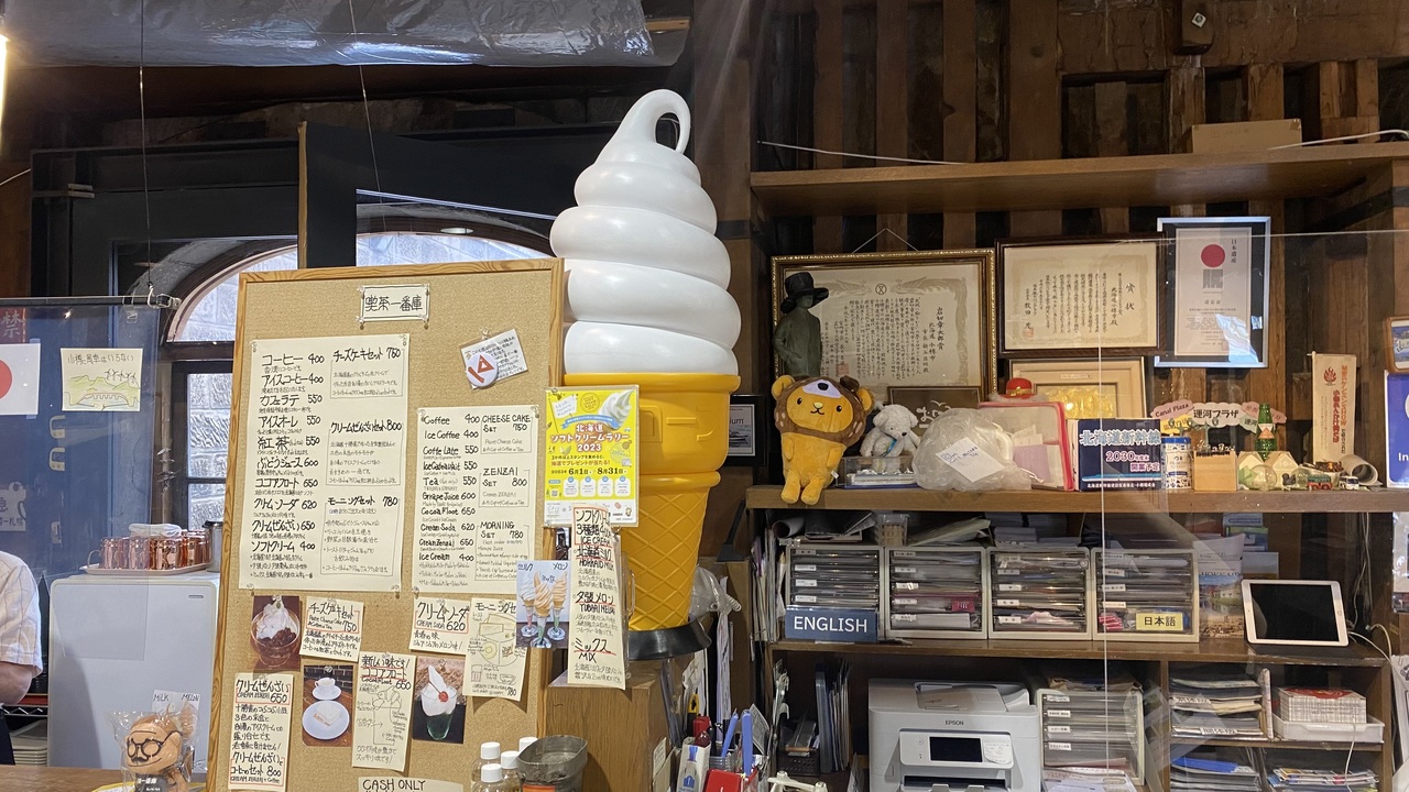 JR小樽駅から徒歩15分ほど小樽運河沿いにある古い建物の中に喫茶とお土産屋があります。AM9:00から営業で喫茶もやってますので、ソフトクリームをいただきました。北海道のお土産種類も豊富に売ってました。