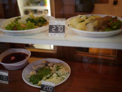 店員さんにオススメを聞くと、白身のお魚とジャガイモのつけあわせのプレートを勧められ、これを注文しました。2.7ユーロながら、ボリュームもあり、ちょうどよい塩加減!大満足でした。- 旅行時期