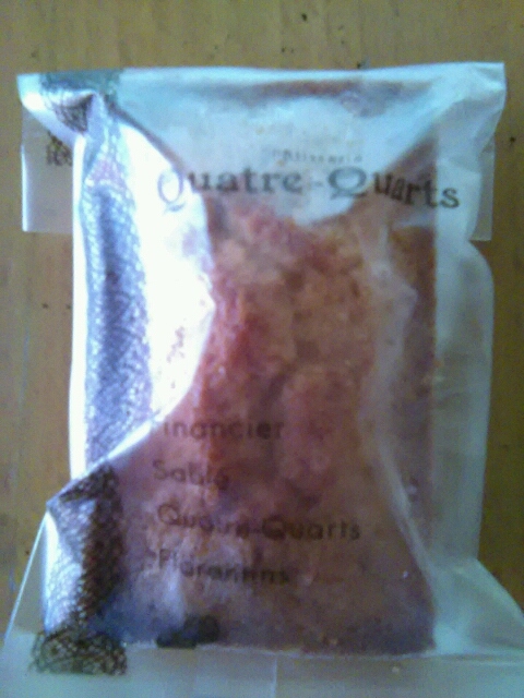 ここのキャトルカールさんは、京王線の京王府中駅に隣接している京王ショッピングセンター、ぷらりとの一階にあります。小平、武蔵小金井、立川、分倍河原などにお店があり、どこもフランスのパティスリーを意識したような素敵なお店です。今回はスタンドパックでシャーベットにもなるジュレやフィナンシェをいただきました。ジュレはさすがに美味しく、またフィナンシェもかなり厚みのある食べ応えあるものでした。