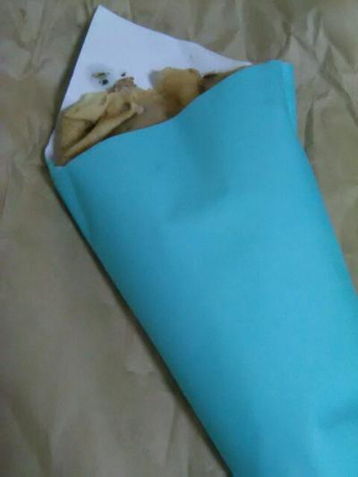 ここのジェラフルさんは、京王線調布駅からすぐのところにある、パルコの一階数にあるクレープ屋さんです。比較的できてから新しいです。お店のすぐ脇でも立って食べれそうですが、狭くて入り口に近いのであまり落ち着きません。もう少し広く落ち着けるスペースがあると嬉しいのですが・・・。ストロベリーチョコレートのクレープをテイクアウトしました。