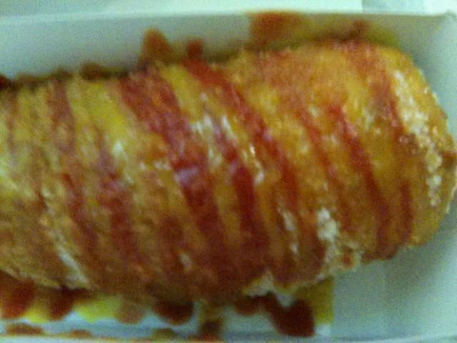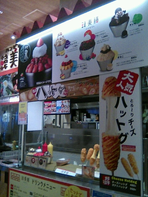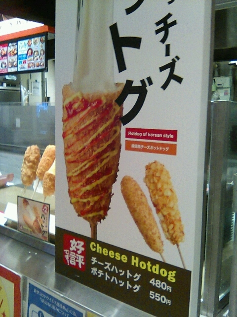 ここの韓美膳さんは、小田急線及びJR相模線海老名駅から三分もしないところにある、ららぽーと海老名の3階、フードコートにあるお店のひとつです。あちこちで韓国料理のテイクアウトのお店として見かけて利用したことがありますが、フードコートのお店として利用したのは初めてです。今回はハットグチーズをいただきました。