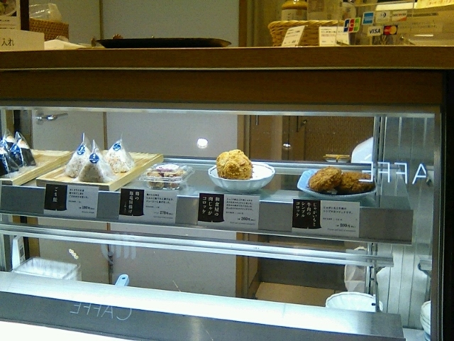 ここのだし茶漬けえんさんは、JR有楽町駅の改札目の前にある、有楽町イトシアの地下一階、食品フロアにあります。丸井やルミネなど、どちらかというと20代から40代若い人が集まるような場所にあるかと思います。また、駅に近いのがいいですね。土日の利用だけでなく、平日の仕事帰りなどに利用されている会社員の人などをよく見かけます。今回はテイクアウトで梅のおむすびと牛肉コロッケをいただきました、コロッケは他の店舗でもいただいたのですが、どうも油の切れが良くありません。