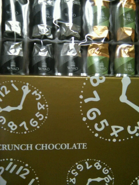 ここの和光ケーキ&チョコレートショップは、東京メトロ銀座駅からすぐのところにあります。かの有名な銀座の高級宝飾店のアネックスです。さまざま 種類のお菓子やケーキを売っていますが、今回は和のクランチチョコレートにしてみました。12個入りで。抹茶タイプと黒ごまタイプのクランチチョコレートが6個ずつ入っています。クランチの食感とチョコレートと黒ごま、そして抹茶のハーモニーがとても新鮮です。