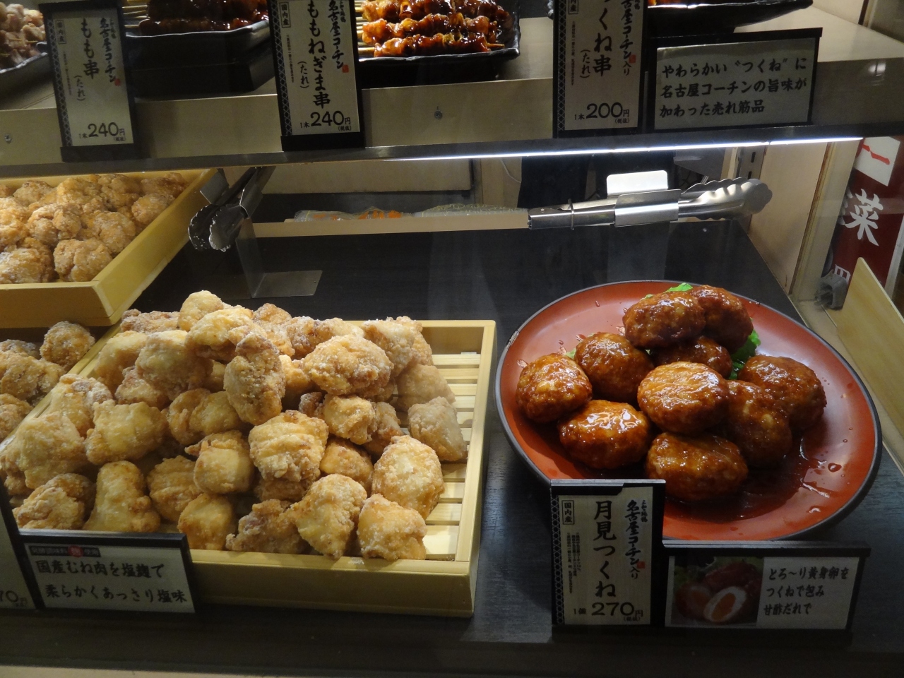 ここの鶏三和さんは、横浜駅西口に隣接している駅構内のジョイナス、レストラン街にあります。創業明治33年の歴史のある、名古屋コーチン専門の焼き鳥やお惣菜の専門店です。愛知県に本社のあるお店で、名古屋コーチンを飼育から加工、販売、品質管理までされています。コーチン入り月見つくねや、ねぎま串をいただきました。月見つくねは特にリピートしたいここの看板商品です。