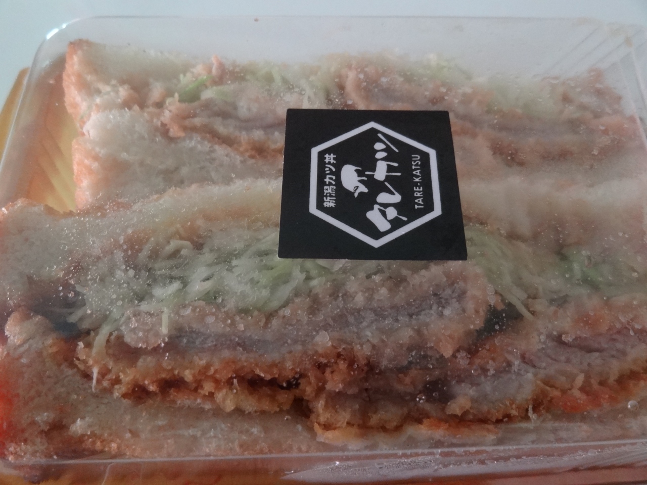 ここの新潟カツ丼、タレカツさんは、東京メトロ日比谷駅からすぐのところにあります。鹿児島県のアンテナショップがすぐ隣にあります。店内はあまり広くなく、それほどすぐに満席になってしまいます。今回はカツサンドをテイクアウトしました。確かに揚げたてのカツは非常に大きくて美味。サクサクとした揚げあがりが、刻みキャベツに合いますし、ソースの味も絶品です。強いていえばサンドイッチのケースの安定感が悪く、とても食べにくかったです。