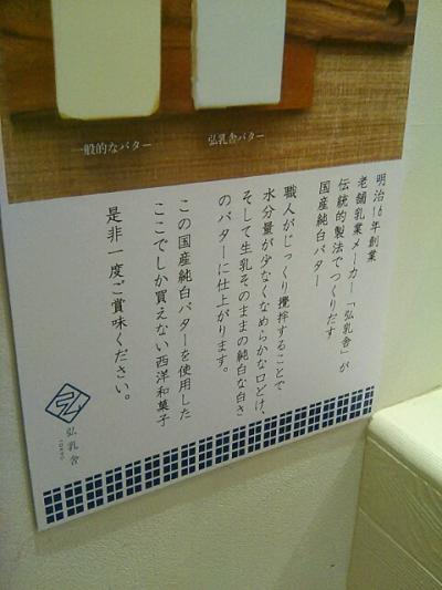 ここの弘乳舎Tokyoは、JR有楽町駅の改札目の前にある、有楽町イトシアの地下一階、食品フロアにあります。熊本で1883年に創業明日乳製品メーカーのバターを使って、塩バターどら焼きやもっちりきなこシュー、黒豆バターサンド、緑茶やほうじ茶のラングドシャなどを販売しています。お店のカラーコーディネイトが白と青が基調でとてもすがすがしいです。扱っている商品も好みのものばかりで、全て食べたくなります。塩バターどら焼きを頂きました。濃厚なバターなので、食べる時の温度が大切です。ちょっと柔らかくなった頃がおすすめです。