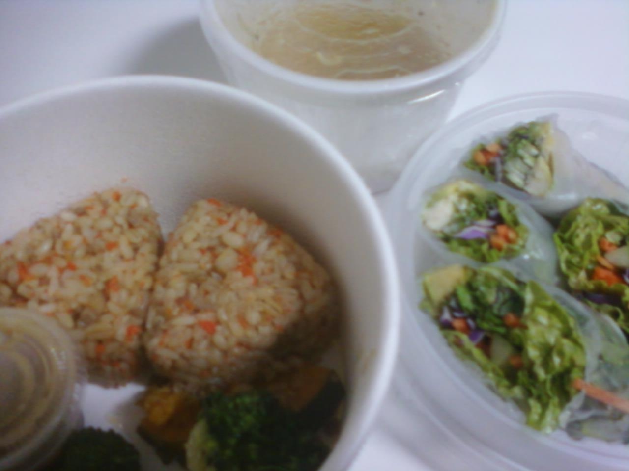 ここのタニタ食堂は、JR有楽町駅の改札すぐ脇にあるお店です。栄養価が高く、ヘルシーなメニューを提供し続けるタニタさんですが、テイクアウトのお弁当があったので買ってみました。ローストビーフや、アボカドと海老の春巻きの2タイプがあって、春巻きの方を選びました。小さなおにぎりや温野菜、美味しいスープもついています。美味しくヘルシーで、毎日食べたくなります。
