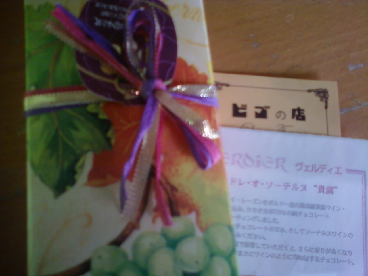 ここのビゴの店は、田園都市線鷺沼駅から3分ほどのところにあります。神戸芦屋に本店のある、老舗のパン屋さんで、創始者であるビゴさんの名前が付いています。パンだけでなく、ケーキもたくさん置いていますが、今回は、レザンドレ・オ・ソーテルヌをいただきました。ドライレーズンをフランスボルドーの最高級貴腐ワインソーテルヌに浸けて、カカオ70パーセントの純チョコレートで包んだものです。ワインの芳醇な香りがとても上品なチョコレートでした。