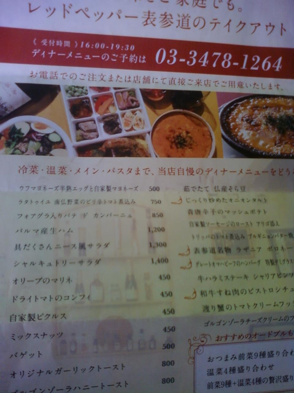 ここのレッドペッパーさんは、表参道交差点のすぐそばにある店です。恵比寿や幕張にも同じお店があるようですね。今はテイクアウトもたくさん扱われていて、今回はドライトマトのコンフィにしました。トマトの味がオイルに染みていて、オイル自体もとてもおいしかったです。