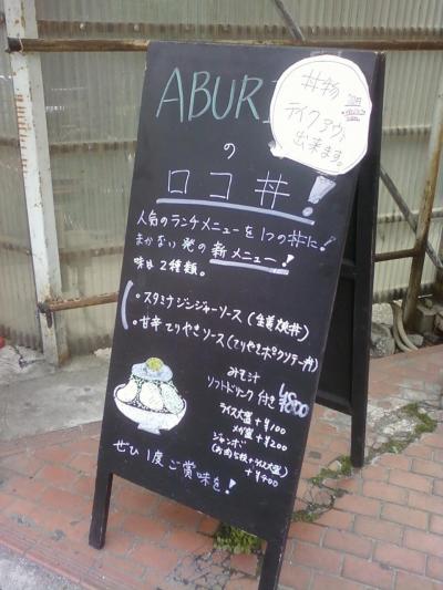 ここの炙里さんは、小田急線向ヶ丘遊園駅南口から4分くらいの所にあります。向ヶ丘遊園駅と登戸駅を結ぶ線路の踏切に近い場所なんですが、少しわかりにくいところです。お店自体も急な階段を登って行かないといけないのですが、一階の階段入り口脇にたくさんのお料理の紹介の看板が出ていますので、気づきます。テイクアウトのロコ丼、いくつか種類があるうち、スタミナジンジャーソース(生姜焼き丼)にしてみました。このスタミナジンジャーがすごく美味しく、卵にもぴったり合って美味しすぎました!