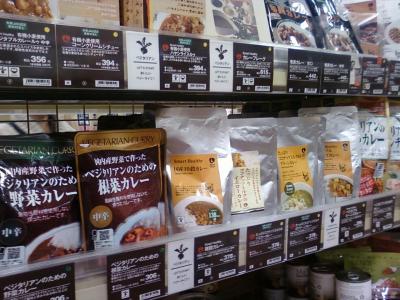 ここのナチュラルハウスは、小田急線海老名駅から4分くらいのところにある、丸井ファミリーの一階、食遊館にあります。駅からくると結構億のほうなのでわかりづらいですが、オーガニックやベジタリアンの食品などを探している人が目指して来ているという感じです。お肉が入っていないカレーのレトルトパック、充実しています。