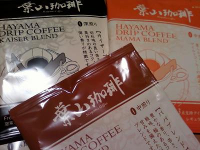ここの葉山珈琲は、小田急線相模大野駅北口から四分くらいのところにある、伊勢丹相模原店本店の二階にあります。イートインスペースと、コーヒー豆の計り売りをしています。コーヒーは、ドリップタイプが、小袋になったものがあって、とても便利。パパ、ママなどの名前も愉快ですね。一袋102円です。