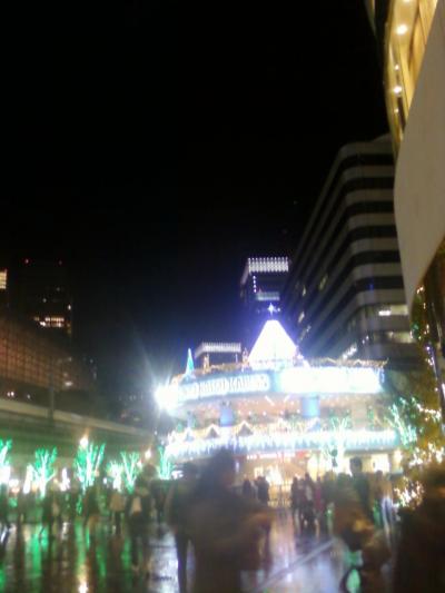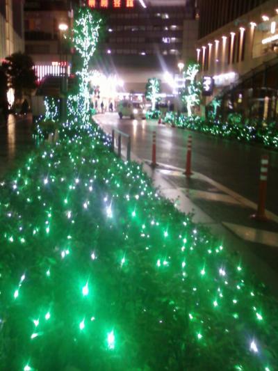 ここのウインターイルミネーションは、有楽町の駅前、イトシアさんや東京交通会館などにわたってひろく見渡すことができます。緑が基調で、都会のクリスマス、という感じですね。雨の日なども光がにじんでいてきれいです。待ち合わせ場所として使う人が多いので、時間を過ごすのに最適ですね。