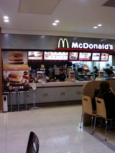 ここのマクドナルドはさん、横浜市営地下鉄センター北駅に連結しているショッピングモールあいたいの二階、フードフロアにあります。ここのフロアの中で最も広々と食べれるのですが、中国での期限切れ肉の問題を受けたからか、かなりがらがらでした。今の時期は月見バーガーなどが美味しいのに、残念ですね。