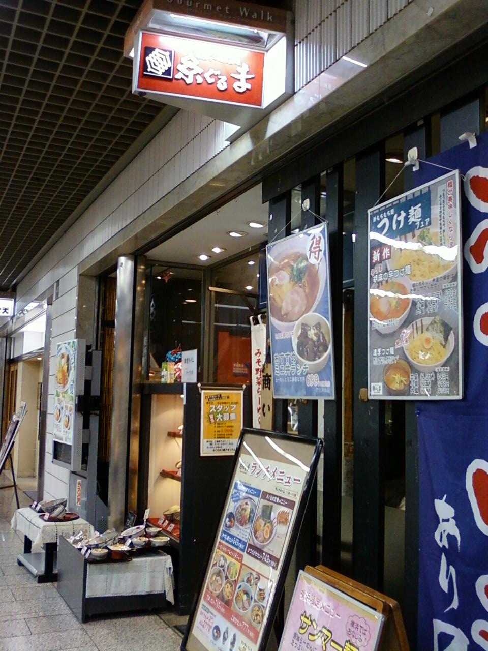 ここの京らーめん糸ぐるまさんは、JR川崎駅、京急川崎駅、モアーズなどを地下で連結させているアゼリア商店街の中にあります。京風ラーメンのお店で、ラーメンのセットも、こまちセット、てまりセットなど女性風なのが可愛いです。セットのデザートもあんみつ、みたらしだんごなどがついてきますよ。