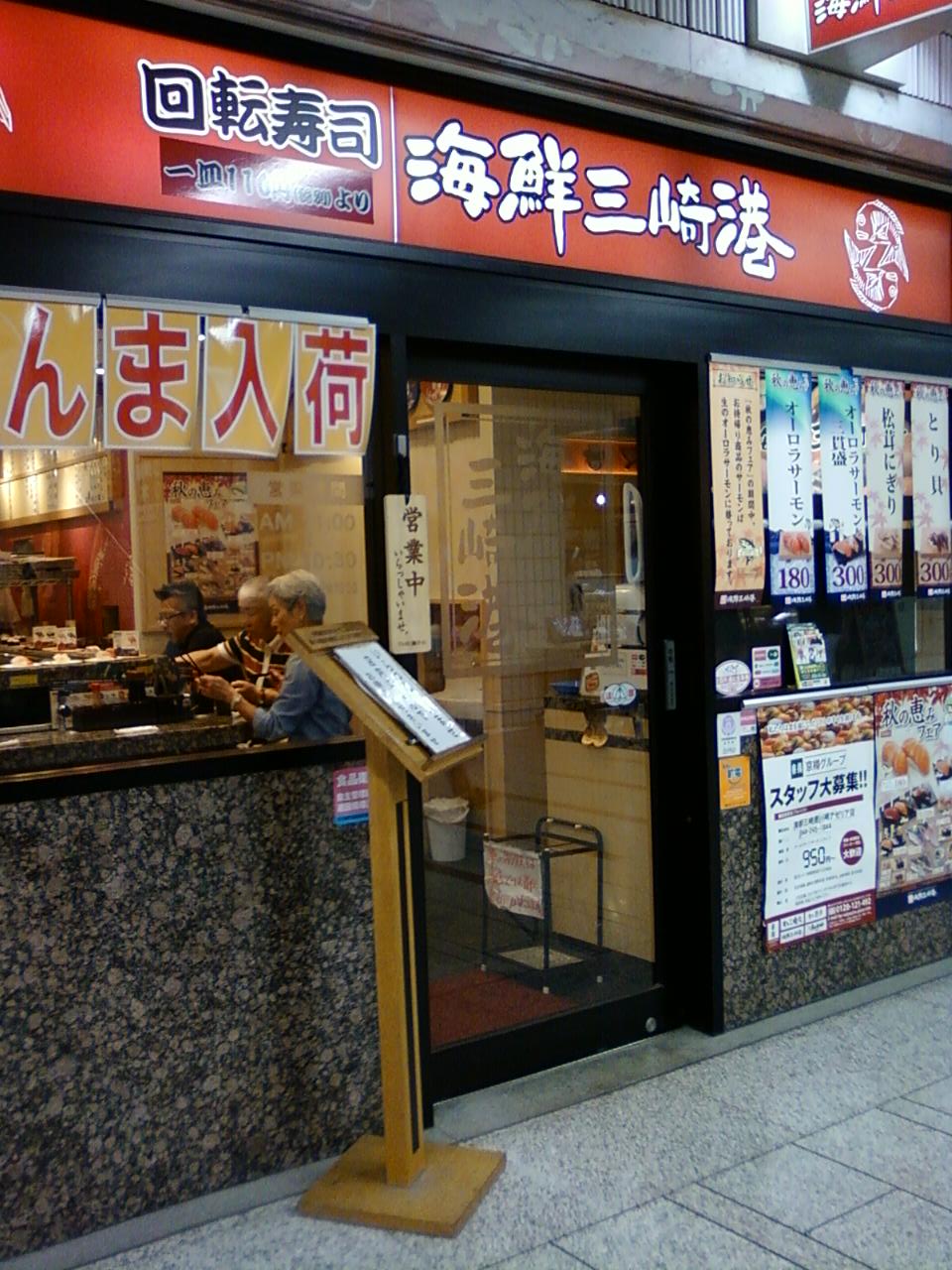 ここの海鮮三崎港さんは、JR川崎駅、京急川崎駅、モアーズなどを地下で連結させているアゼリア商店街の中にあります。いつもお客さんがいっぱいで、特にお昼時は混んでいます。季節により異なる、おすすめのネタが楽しみです。今回は秋刀魚を特にすすめていました。コスパもかなりいいですね。