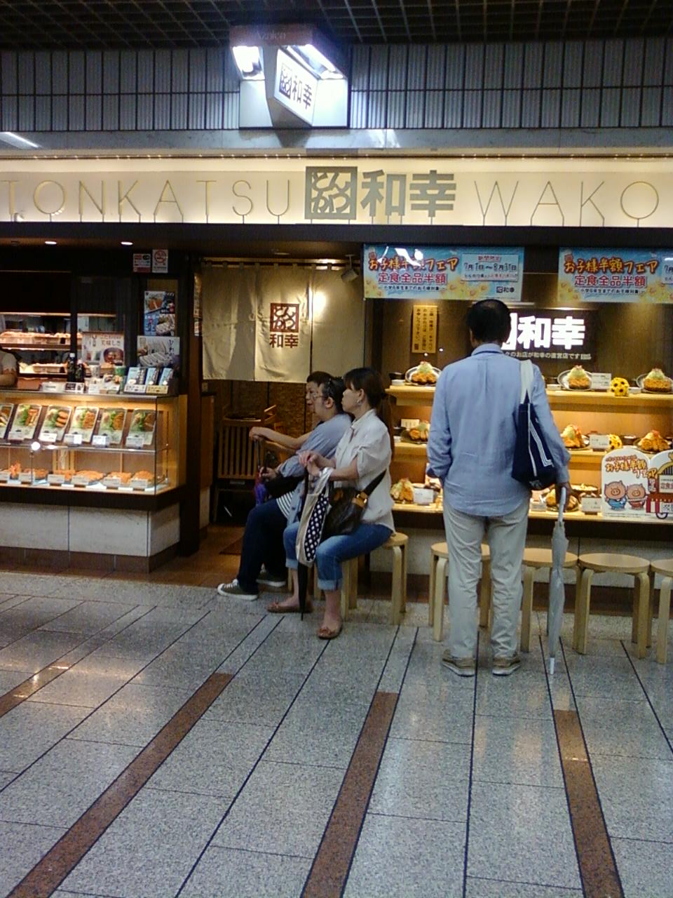 ここの和幸さんは、JR川崎駅、京急川崎駅、モアーズさんなどをつないでいる、地下アゼリア商店街のレストランが並ぶ通りにあります。いつもどこでも混んでいる和幸さんですが、ここも例外にもれず混んでいますね。子供用のメニューもありますし、幅広い年代で利用できるのが魅力かもしれません。