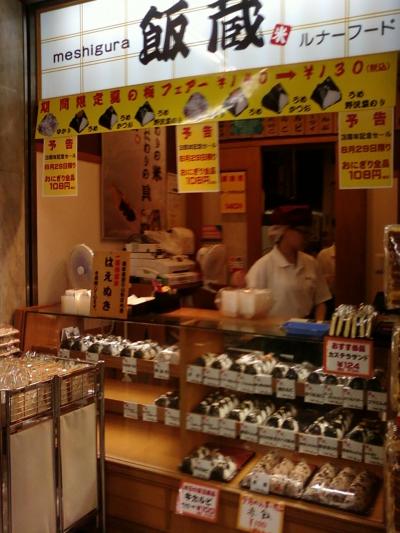 ここの飯蔵さんは、JR川崎駅、京急川崎駅、モアーズさんなどをつないでいる、地下アゼリア商店街のレストランが並ぶ通りにあります。店内にはわずかのイートインスペース、店頭にはおにぎりとサンドイッチ、お弁当が中心に並べてあります。とにかく安い!サンドイッチも100円で売ってます。おにぎりも100円のものがあり、とにかくかたちが大きいですね。満足度高いお店です。