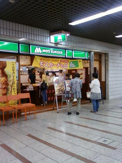 ここのモスバーガーさんは、JR川崎駅、京急川崎駅、モアーズさんなどをつないでいる、地下アゼリア商店街のレストランが並ぶ通りにあります。ドアのないオープンなお店で、気軽に立ち寄れるところがいいですね。モスカードという、月末に割引があるカードのこと、初めて知りました。最近は夏ということもあってか、カレー味の商品が結構増えています。