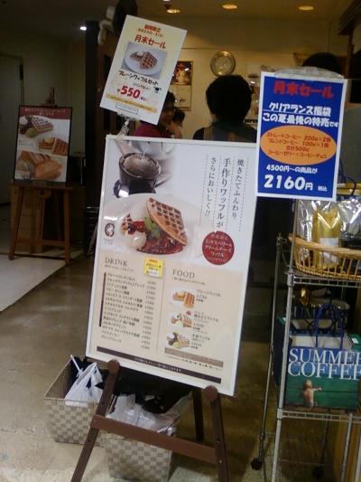 ここのカフェメルカードさんは、川崎モアーズの地下二階、川崎市場の中にあります。コーヒーの専門店で、UCC系列の豆や粉のコーヒー専門店ですが、ほんの少しカウンターがあって、そこでワッフルやコーヒーなどを座って味わうことができます。コーヒーはいわゆるファストフード系のチェーンより高め、ただ、豆にこだわる人にはこちらのほうがいいのかも。場所的にちょっと落ち着かないのが残念。