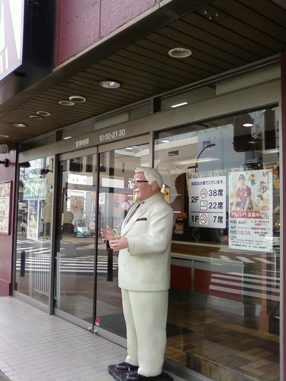 ここのケンタッキーフライドチキンさんは、小田急線伊勢原駅の南口から二分くらいのところにあります。マクドナルドのとなりにあって、角地で落ち着きます。二階建てで、一階に7席、二階には60席あります。全席禁煙のケンタッキーさんが多い中で、ここは2階が分煙になっていますね。夜9時30で閉まってしまうのが残念。