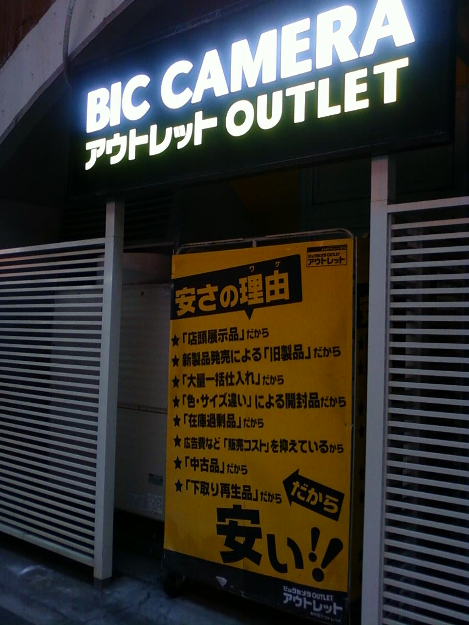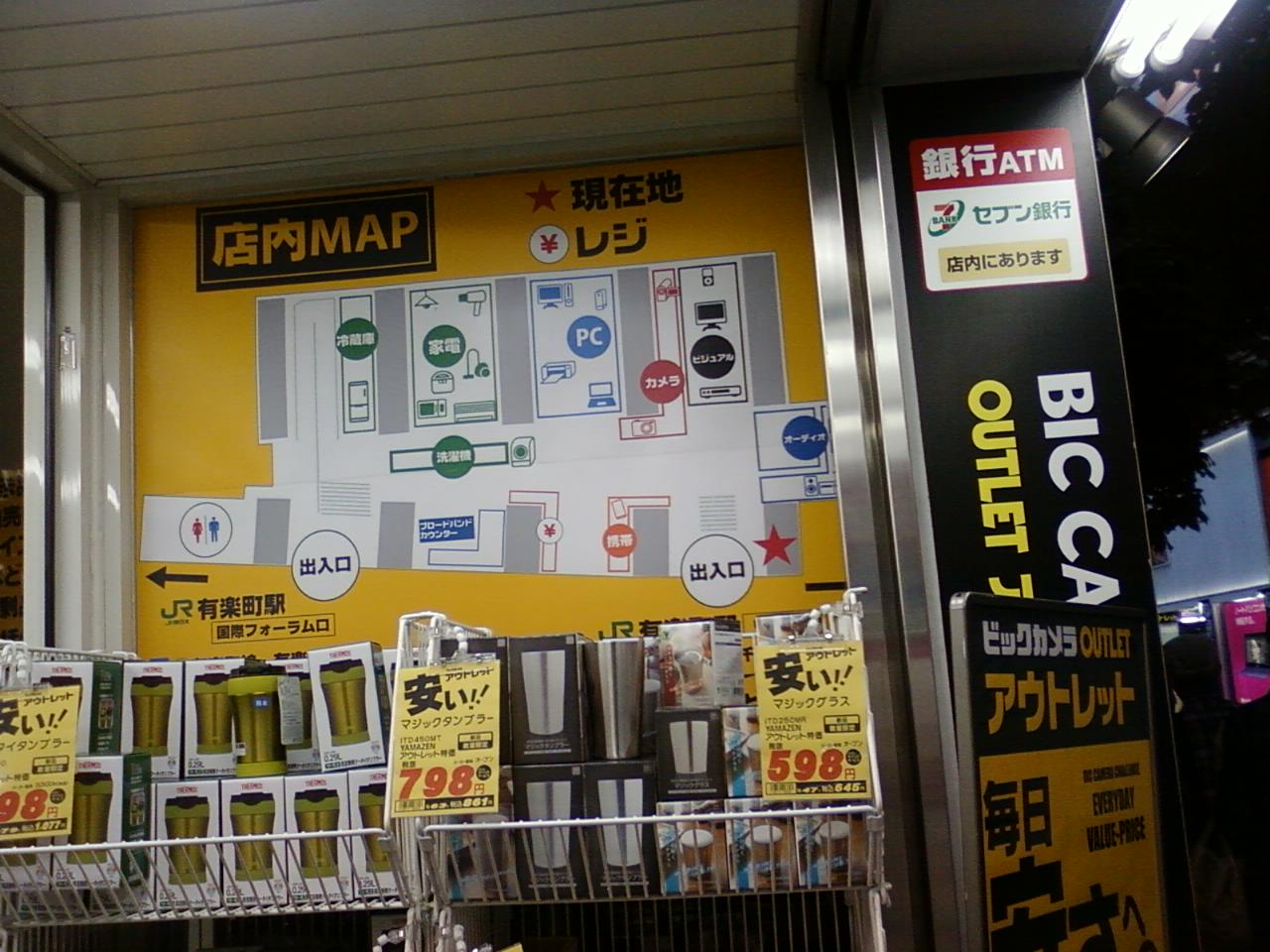 ここのビックカメラアウトレット点は、JR有楽町駅から数秒のところにあります。駅の高架下スペースをうまく使って存在します。パソコン、カメラ、電化製品など、生活にかかせないものがたくさん安くそろいます。とにかく駅からすぐなので迷うことなしですね。