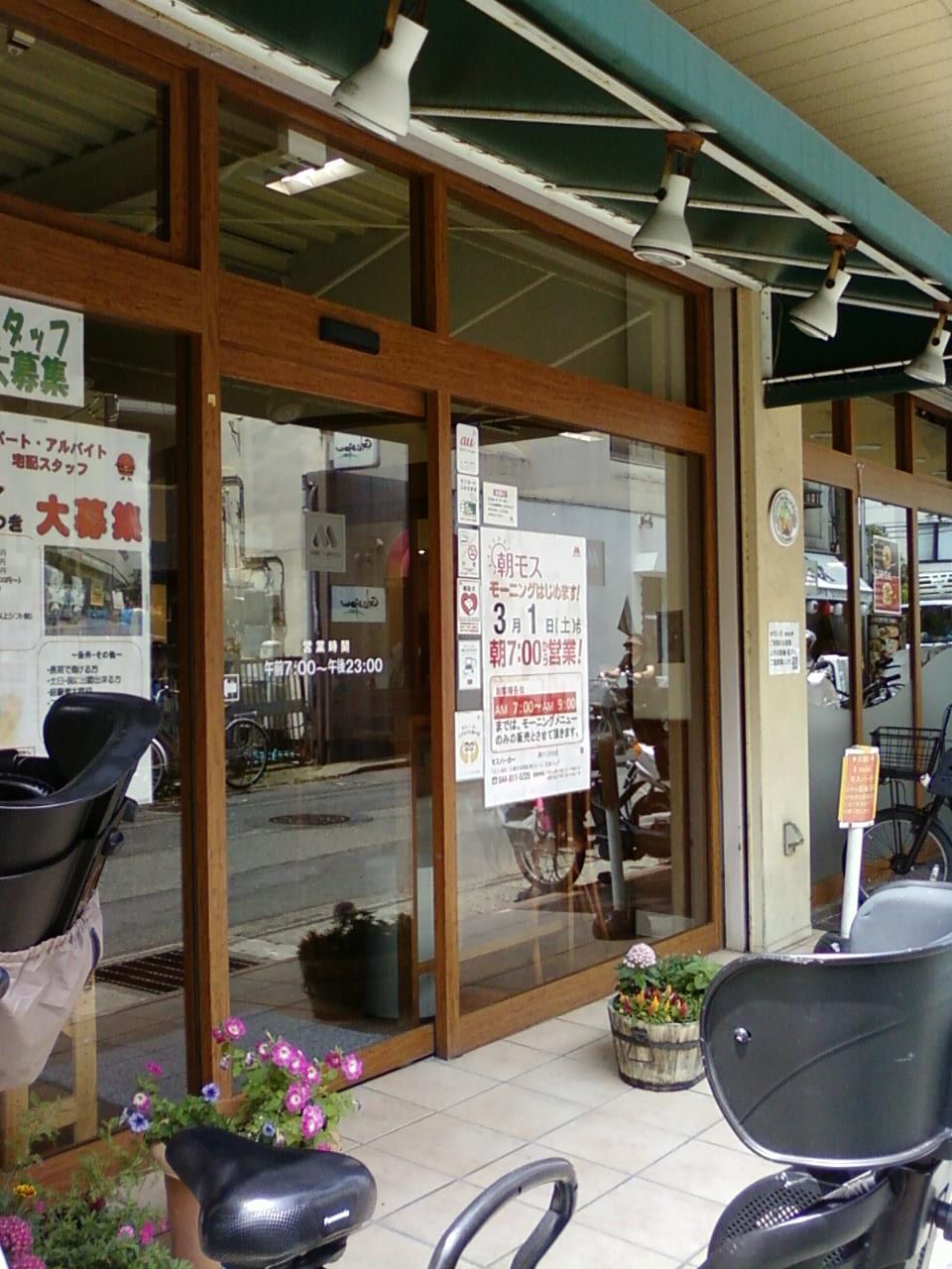 ここのモスバーガーは、JR南武線武蔵溝ノ口、および東急線溝ノ口駅から八分くらいのところにあります。二ケ領用水の小さな橋があるのですが、その近くです。木目調の広いお店で、この辺りにはゆっくりできるお店が少ないのでとても貴重です。宅配もやっているし、モーニングもあり、とても便利なお店です。