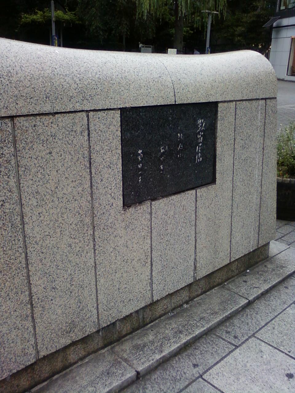 数寄屋橋の石碑は、東京メトロ銀座駅からすぐの、数寄屋橋公園の数寄屋橋交差点側にあります。数寄屋橋公園自体が今ではあまり目立たなくなってしまって、この石碑を立ち止まって読む人も少ないですね。今では、かつてここに橋があったことを偲ばせるわずかな資料です。
