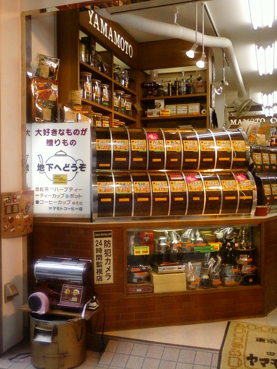 ここのヤマモトコーヒーは、新宿の東口から3分くらいのところです。場所的にはちょっとわかりづらいところにありますが、そばを通ったことがある人はけっこういるかもしれません。世界各国のコーヒーが100グラムから量り売りしてくれます。結構古くからあるお店のようで、常連さんのようなお客さんが結構来ていました。地下には世界の紅茶のスペースになっています。